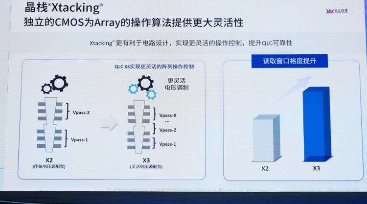 Xtacking 结构将 CMOS 电路同闪存阵列分离的设计对操作算法带来了更大灵活性,从而提升了 QLC 的可靠性。