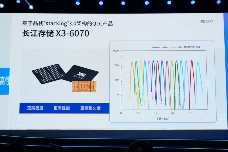近日,长江存储在闪存市场峰会上表示,采用第三代 Xtacking 技术的 X3-6070 QLC 闪存寿命媲美 TLC 颗粒,可实现 4000 次 P / E 的擦写寿命(大多TLC 在3000次左右),这迅速引起了国内外媒体的关注。