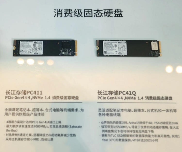 最后,长江存储在现场还展示了采用QLC颗粒的 PC41Q 消费级固态硬盘,连续读写为 5500MB/s,可靠性媲美 TLC 固态硬盘,实现了 30℃ 下 1 年的数据保持和 200 万小时的 MTBF 时间。