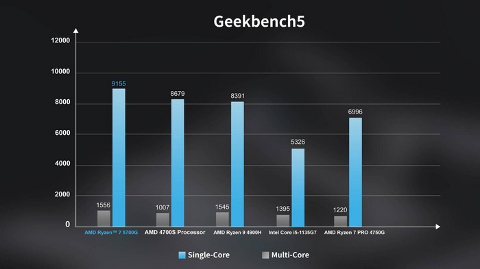 内采用定制AMD B550主板,搭载AMD Ryzen 7 4700G(默频3.6 GHz/睿频4.4 GHz)和 AMD Ryzen 7 5700G(默频 3.8 GHz/睿频 4.6 GHz),当然你也可以自己更换CPU,但需要注意用65W TDP的版本,所以 5950X/5900X/5800X并不支持。