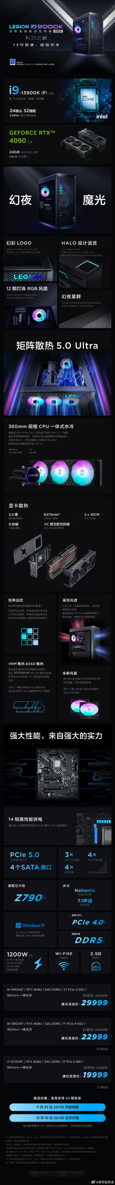 现在它来了。联想今晚推出了搭载 RTX 4080 的新款“刃 9000K”,高低两个配置,低配21999元,首发到手价19999 元(这里),高配24999元,首发到手价22999元,定于12 月 10 日开售。作为对比,下面是RTX 4090版本的价格,便宜了近1万元。