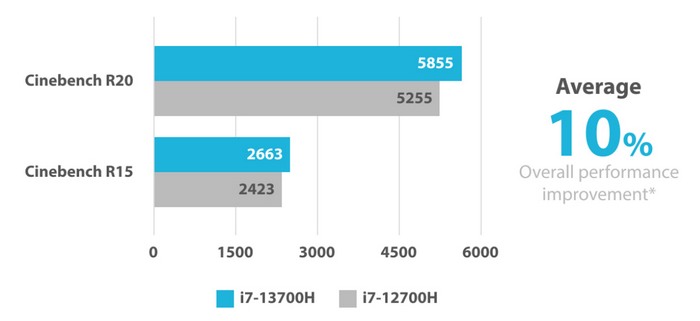 内升级第13代酷睿H系列处理器(酷睿i5-13500H/i7-13700H),提供双DDR5-4800MHz内存槽,以及双PCIe 4.0 M.2和2.5英寸硬盘仓位,没有独显依靠 Iris Xe 锐炬核显。官方表示,新款的CPU性能较老款提升约10%,能满足重负载办公需求。