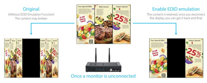 值得一提的是,支持 EDID 功能,可以轻松解决画面兼容性问题,即使断电或连接中断情况下,不会黑屏,不会发生比例画面变形问题,这对于广告牌展示场景非常重要。另外,管理员模式可以远程异地控制界面。