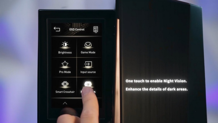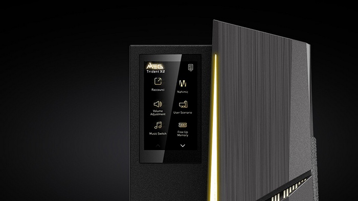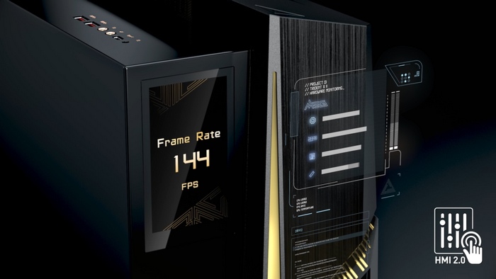 外观没有变化,依旧棱角分明,黄色点缀,悬浮式机舱,带屏显,采用 MSI HMI 2.0 交互设计,能够追踪系统运行状态,调整运行模式,还可以控制显示器,目前支持部分微星电竞显示器,例:MPG 321UR-QD,后续支持型号在持续更新中。