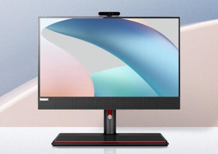 外观沉稳简约,ThinkCentre 经典黑红配色,屏幕三边窄边框,顶部有个醒目的摄像头,500万像素,可以上下20度角度调节,支持智能画面频率,还有安全黑阀防隐私设计。另外,集成4阵列麦克风,支持AI算法,360度拾音,AI智能降噪。自带支架可以多向调节,允许大仰角俯仰、升降、旋转等随意调节。