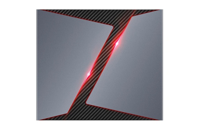 超薄机身,有棱有角像1U服务器。个头不大,尺寸为222 x 195 x 38 毫米,如果能给的底座竖置用就更好了。该机颜值还不错,顶部颇有设计感,有个拼接醒目“Z”造型,还有碳纤维点缀。