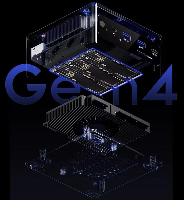 内有双通道 LPDDR5 6400MHz 内存(可超频至7500MHz),支持三条 PCIe 4.0 x4 2280 SSD 扩展。