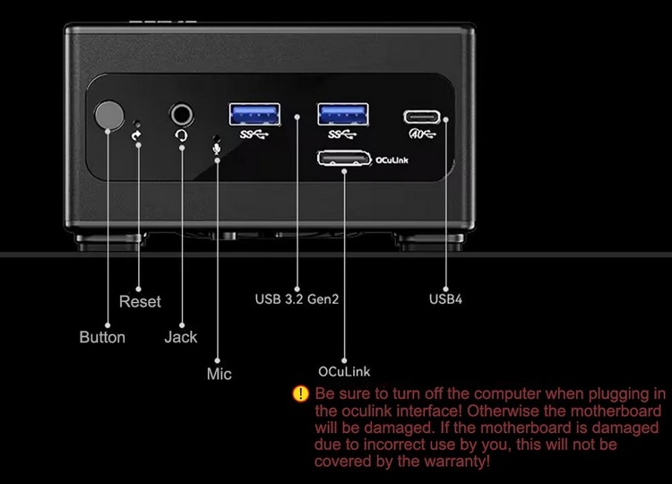 其他方面,支持WIFI 6无线,提供大量扩展,包括:双2.5G千兆LAN,双HDMI 2.1、USB 4 和大量USB 3.2 接口,还提供一个OCuLink 专用扩展接口,可以外接独显。
