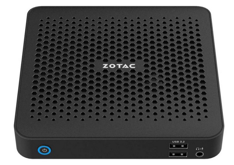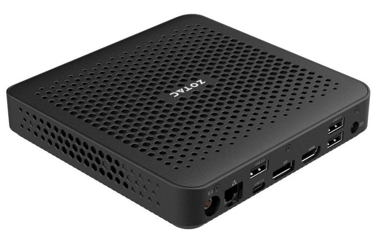外观造型和 ZBOX edge MA762 一样,超薄机身,尺寸为149.5 x 149.5 x 28.5 毫米,机身一圈儿有大量散热孔,和电视盒差不多。