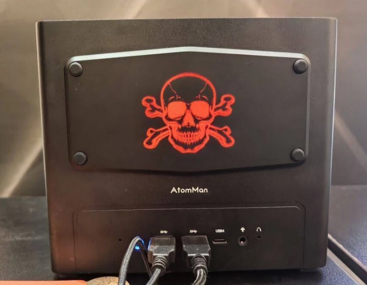 外观跟英特尔某某很像,前面也有个骷髅头LOGO,尺寸为 175 x 155 x 132mm,相对而言个头并不算大。