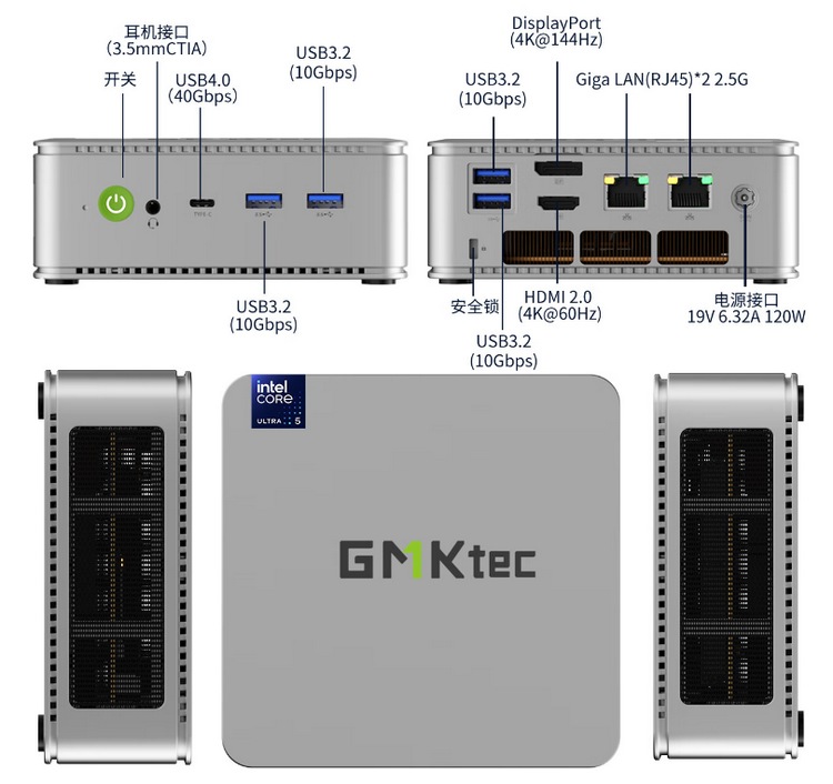 内搭载英特尔酷睿 Ultra 5 125H 标压处理器(14核/18线程、Intel 4 工艺、默频3.6GHz/睿频4.5GHz),提供双 DDR5 5600MHz 内存和双 PCIe 4.0 M.2 2280 SSD 扩展,最高支持64GB 内存和8TB SSD储存。