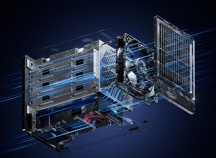 外观设计不变,还是四个3.5英寸硬盘位,整体简约低调。个头不算大,尺寸为228 x 185 x 150mm。