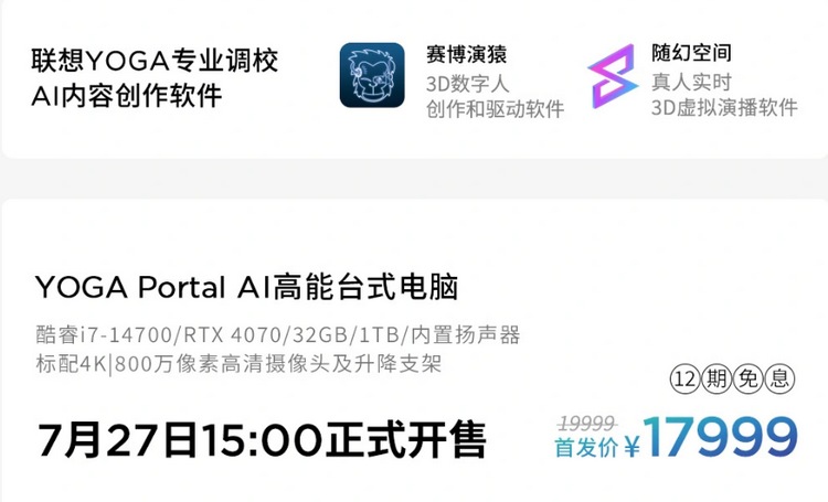 就一个配置(酷睿i7-14700 +32GB+1TB),首发价17999元(原价19999元)。