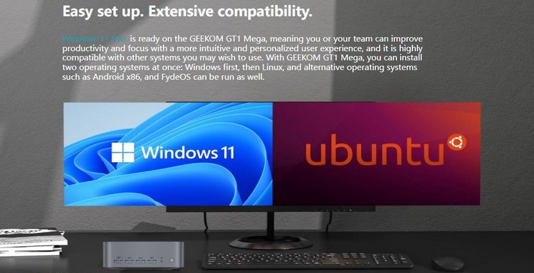 最后,兼容Win 和 Ubuntu 系统,支持多路外接显示,还支持 WIFI 7 无线和蓝牙,提供外接圆孔供电,可能其中一个USB-C也支持供电。