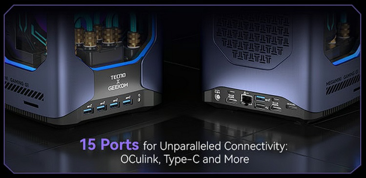 扩展方面,提供多达15个接口,其中还包括OCuLink,可以外接显卡扩展坞或磁盘阵列。